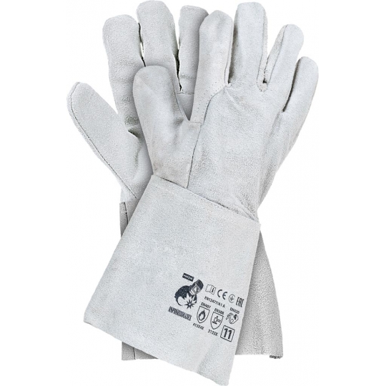 Rękawice spawalnicze w całości wykonane ze skóry bydlęcej.