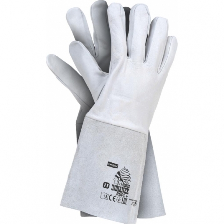 Rękawice ochronne w całości wykonane ze skóry. - skóra bydlęca dwoinowa połączona z licową skórą z kozy - długość rękawicy 35 cm - całodłonicowe - część chwytna oraz wierzchnia wykonana z jednego kawałka wysokiej jakości skóry z kozy, dzięki czemu wykazują większą wytrzymałość i odporność na przetarcia - całoskórzane, czyli w całości wykonane ze skóry, włącznie z mankietem wykonanym ze skóry dwoinowej sięgającym do połowy przedramienia, chroniąc w ten sposób przed przemiękaniem oraz zabezpieczając nadgarstek przed urazami - popularnie stosowane do ogólnych prac mechanicznych - wykorzystywane w budownictwie, przemyśle ciężkim