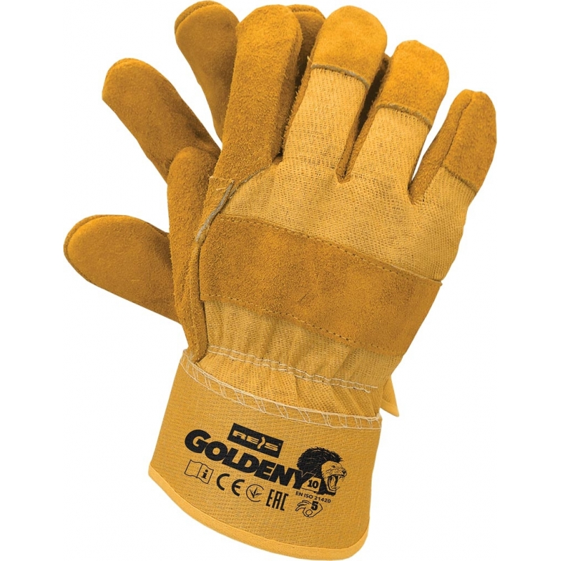 - część chwytna dodatkowo wzmocniona skórą bydlęcą, dzięki czemu rękawica jest odporniejsza na przetarcie i zużycie
