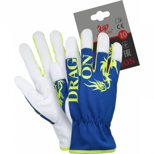 Rękawice ochronne wykonane z wysokiej jakości skóry koziej. - skóra kozia licowa w jasnych kolorach - wierzch wykonany z elastycznej tkaniny spandex w niebieskim kolorze, dzięki czemu idealnie dopasowują się do dłoni - miękka kozia skóra wysokiej jakości zapewnia doskonały komfort pracy i zadowolenie nawet najbardziej wymagającego klienta - marszczenie w nadgarstku sprawia, że rękawice lepiej przylegają do dłoni - popularnie stosowane do ogólnych prac mechanicznych - każda para posiada zawieszkę, dzięki czemu świetnie się prezentują i są idealne na wszelkiego rodzaju prezentacje - zgodne z normą EN420