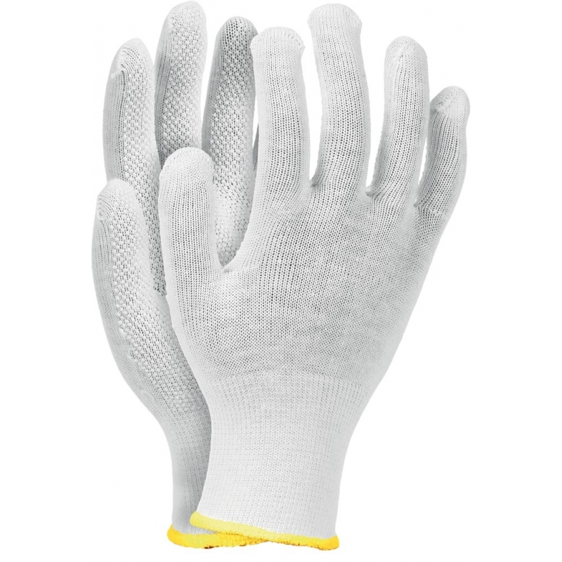 Rękawice ochronne wykonane z wysokiej jakości bawełny z jednostronnym mikronakropieniem.