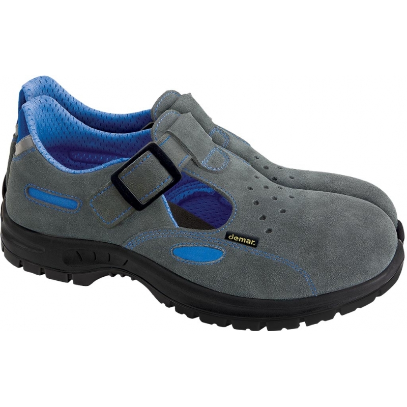 Sandały bezpieczne męskie. - wierzch wykonany ze skóry welurowej, a podszewka z dzianiny dystansowej - wyposażone w podnosek kompozytowy, który zabezpiecza palce stopy przed urazami - antypoślizgowa i odporna na olej napędowy podeszwa, zapewnia dobrą przyczepność nawet na ceramicznym i stalowym podłożu - odpowiednio zaprojektowana podeszwa gwarantuje bardzo dobrą amortyzację stopy w części piętowej - wysoki komfort użytkowania dzięki wymiennej wyściółce, formowanej anatomicznie oraz zastosowaniu w obuwiu paska ochronnego eliminującego ucisk krawędzi podnoska na stopę - kategoria SB FO E SRC - spełniają wymagania norm EN20345, EN20344