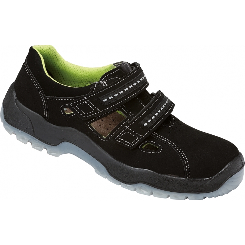 Sandały bezpieczne z metalowym podnoskiem. - antyelektrostatyczne - podeszwa dwuwarstwowa PU/TPU, bieżnik wykonany z litego, transparentnego poliuretanu termoplastycznego, między podeszwa wykonana ze spienionego poliuretanu komórkowego, odporna na oleje, benzynę i inne rozpuszczalniki organiczne - bezpośrednia technologia łączenia podeszwy z cholewką, dwustopniowy wtrysk poliuretanu i poliuretanu termoplastycznego - oddychająca podszewka Solar Spezial o strukturze 3D z otworkami powietrznymi gwarantująca bardzo dobrą przepuszczalność powietrza oraz odprowadzanie pary wodnej. Wysoka odporność na ścieranie i rozdzielanie oraz skuteczna wentylacja gwarantują bardzo dobre właściwości higieniczne i komfort także w wyższych temperaturach - nie rysuje powierzchni - odporne na ścieranie, przecięcia i pękanie, zabezpiecza przed pogłębianiem się rys powstałych w wyniku mechanicznego uszkodzenia podeszwy - z niemetalową wkładką antyprzebiciową - wzmocnione metalową ochroną zabezpieczającą przed urazami o energii uderzenia do 200 J lub naciskiem o sile 15 kN - bardzo dobre właściwości przeciwpoślizgowe - wyposażone w wyjmowaną higroskopijną wyściółkę Air Plus - lekkie, trwałe i wytrzymałe, skutecznie łagodzą nierówności podłoża oraz odporne na ścieranie, przecięcia i pękanie - kategoria S1P SRC - spełniają wymagania norm EN 20345