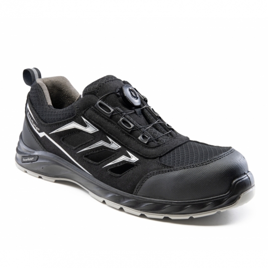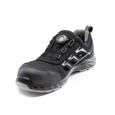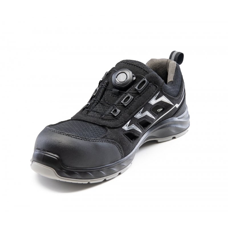 Kompozytowy podnosek oraz kevlarowa wkładka antyprzebiciowa (PS — test gwoździem 3 mm) chronią stopę przed uderzeniem i przekłuciem. Podeszwa wtryskiwana PU/PU oferuje absorpcję energii pięty, właściwości antypoślizgowe SR oraz odporność na olej napędowy (FO).