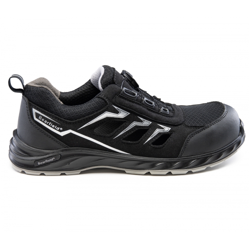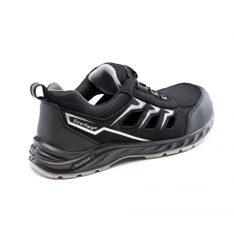 Sandały Bearfield Hull to model ochronny kategorii S1PS wyposażony w zapięcie typu BOA (FITGO) oraz cholewkę z superwytrzymałej tkaniny poliestrowej i mikrofibry. Konstrukcja z wstawkami materiałowymi zwiększającymi wentylację zapewnia komfort w cieplejszych warunkach pracy.