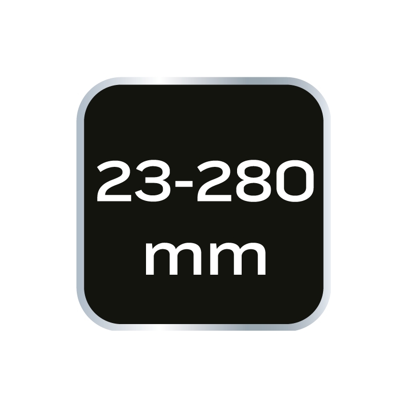 Ściągacz do sprężyn, zakres 23 - 280 mm, maksymalne obciążenie - 1 200 kg na parę, napęd sześciokątem na klucz/nasadkę 19 mm, regulowane zabezpieczenie zapobiegające przypadkowemu zwolneniu sprężyny.