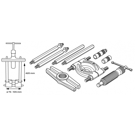 Ściągacz z siłownikiem. Nacisk do 10 ton Maksymalna głębokosć wyciskania 420 mm Separator do łożysk ø 75 - 105 mm
