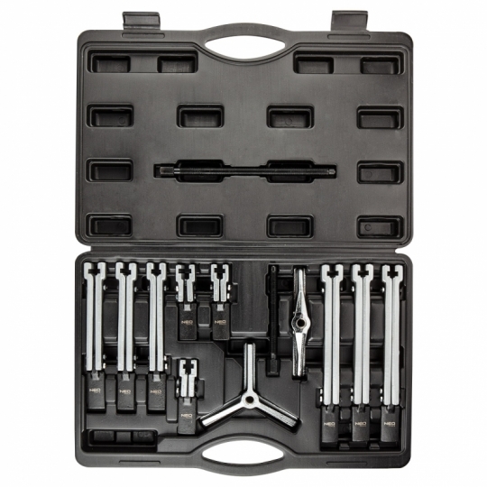 Ściągacz uniwersalny 2 - 3 ramienny. Do łożysk wewnętrznych i zewnętrznych. Rozstaw ramion 35 - 130 mm. Długość wymiennych ramion: 100, 209, 259 mm.