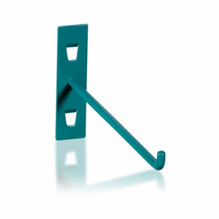 \nHaczyk wykonany z pręta fi 6 mm. Przeznaczony do zawieszania np.: kluczy oczkowych, szpul drutu. Malowany jest farbami proszkowymi (epoksydowo-poliestrowymi) w kolorze RAL6033.
