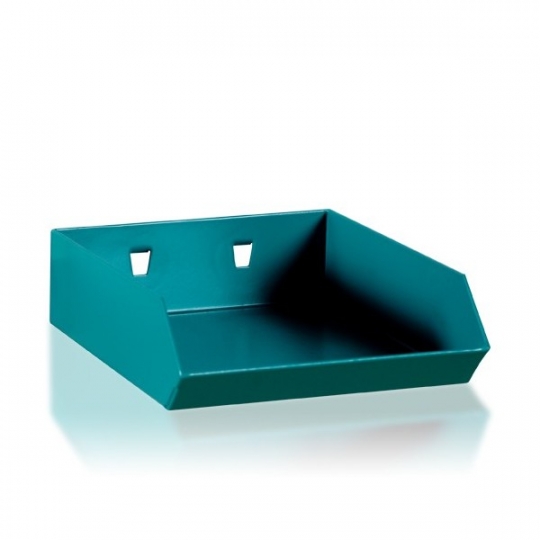 Pojemnik wykonany z blachy 1,5 mm. Przeznaczony do przechowywania nakrętek, podkładek, śrub itp Malowany jest farbami proszkowymi (epoksydowo-poliestrowymi) w kolorze RAL6033. \nPOJEMNIK