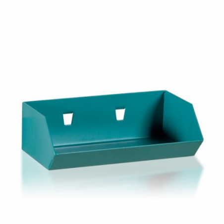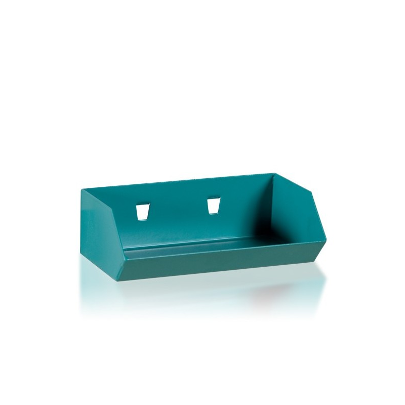 Pojemnik wykonany z blachy 1 mm. Przeznaczony do przechowywania nakrętek, podkładek, śrub itp Malowany jest farbami proszkowymi (epoksydowo-poliestrowymi) w kolorze RAL6033.