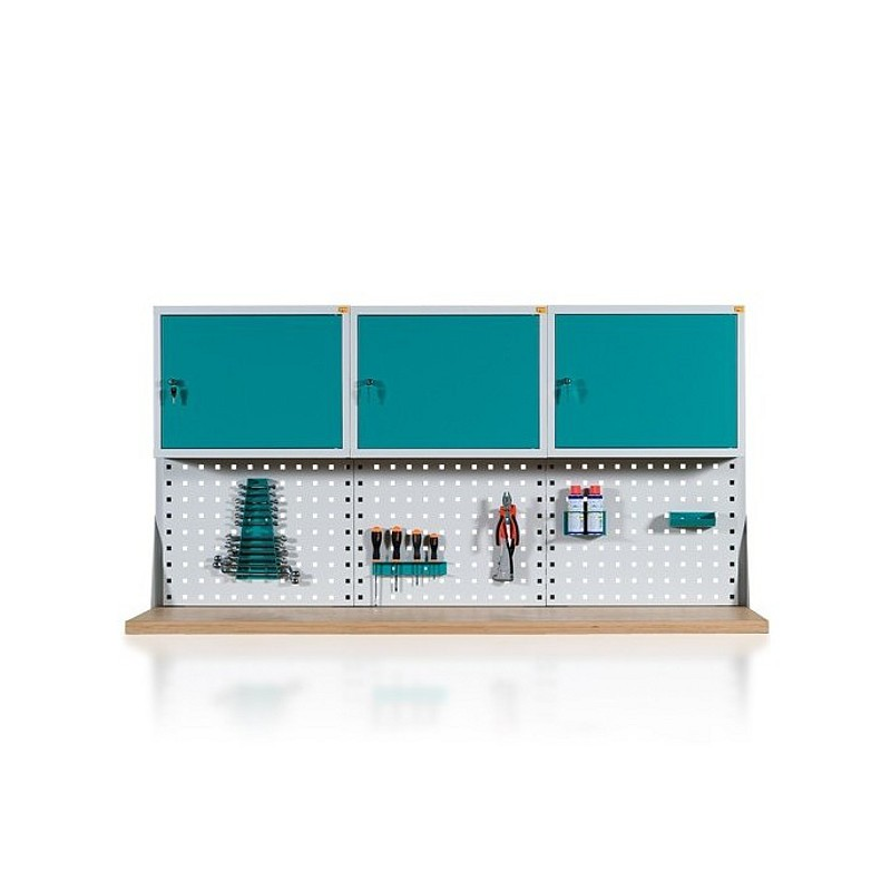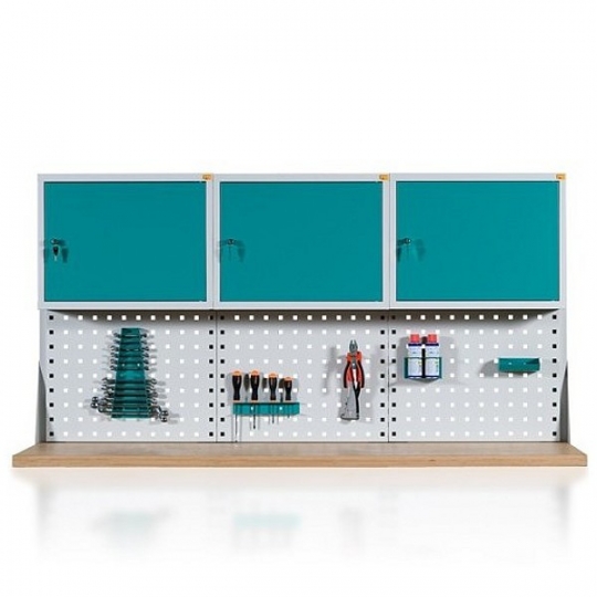 Nadstawka 2-rzędowa z trzema panelami perforowanymi i trzema szafkami