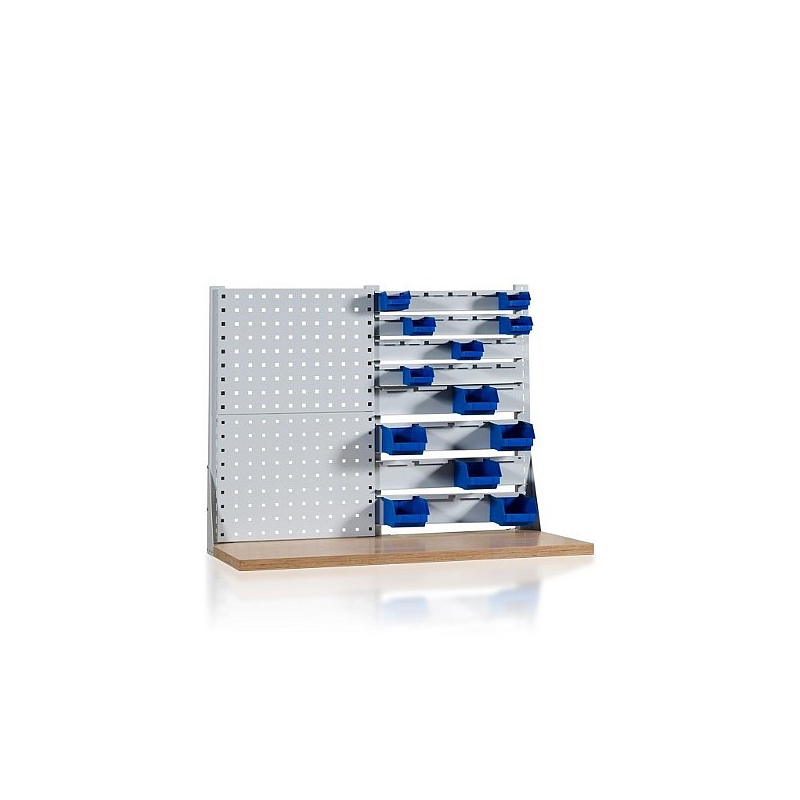 \nNadstawka wykonana jest z profili metalowych, wyposażona w dwa panele perforowane, które umożliwiają montaż dodatkowego wyposażenia (np. uchwyty na wkrętaki, klucze, pojemniki). Nadstawka posiada cztery uchwyty na pojemniki małe (po 6 pojemników każdy) i cztery uchwyty na pojemniki duże (po 4 pojemniki każdy) Malowana jest farbami proszkowymi (epoksydowo-poliestrowymi) w kolorze RAL7035.