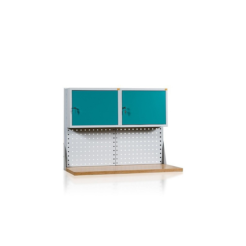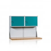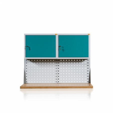 Nadstawka 2-rzędowa z dwoma panelami perforowanymi i dwiema szafkami