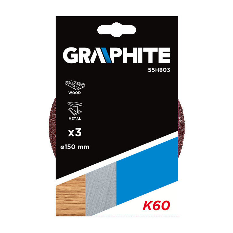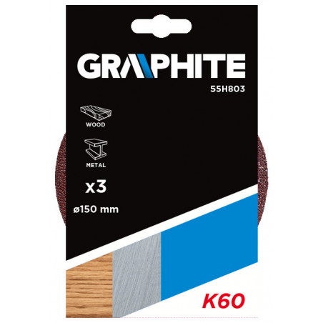 Krążki ścierne 150 mm, K60, zestaw 3 szt.
