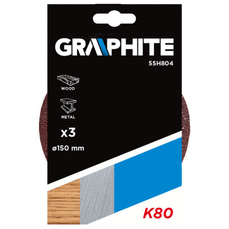 Krążki ścierne 150 mm, K80, zestaw 3 szt.