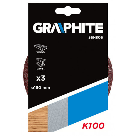 Krążki ścierne 150 mm, K100, zestaw 3 szt.