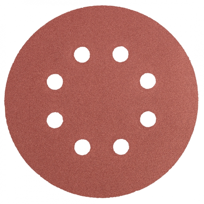 Krążki ścierne 125 mm, K240, 5 szt., z 8 otworami, elektrokorund, nasyp półotwarty, baza z papieru typu E