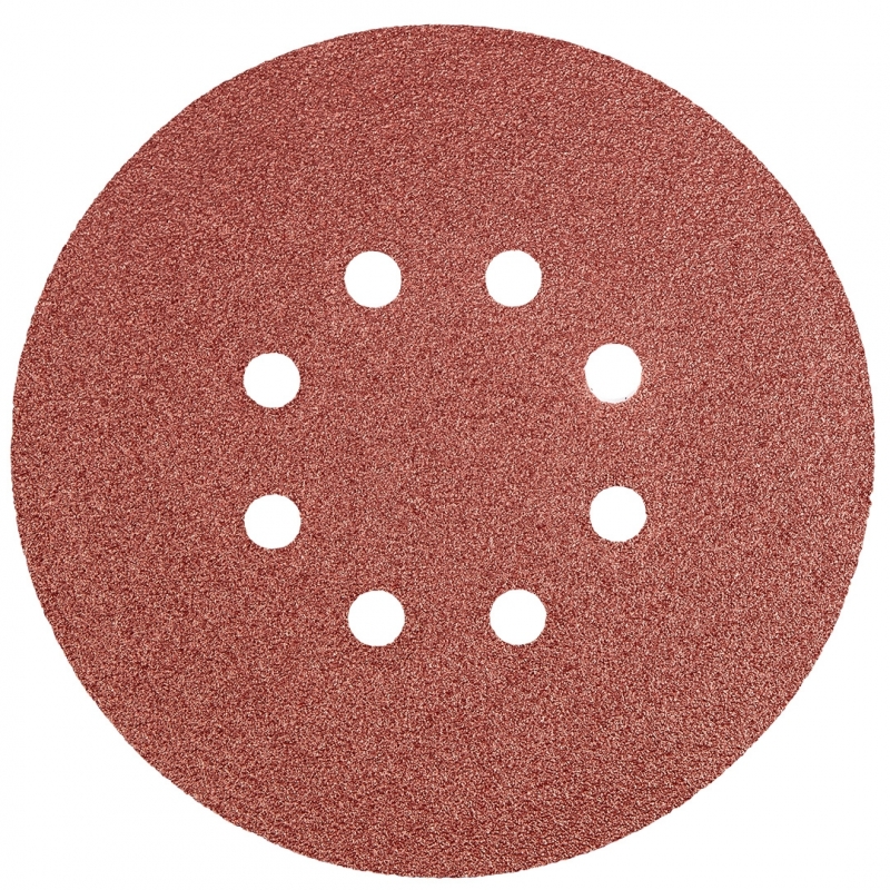 Krążki ścierne 150 mm, K80, 5 szt., z 8 otworami, elektrokorund, nasyp półotwarty, baza z papieru typu E
