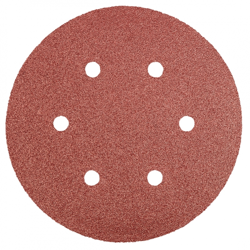 Krążki ścierne 150 mm, K80, 5 szt., z 6 otworami, elektrokorund, nasyp półotwarty, baza z papieru typu E