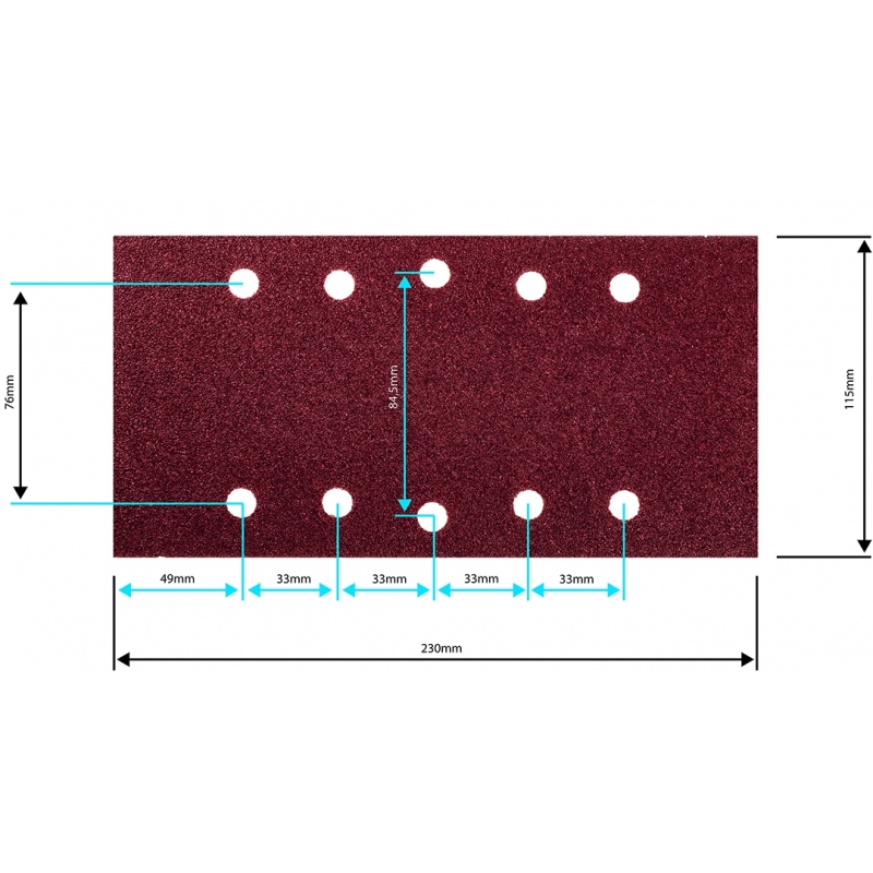 Papier ścierny na rzep 115 x 230 mm, K80, 5 szt., z otworami