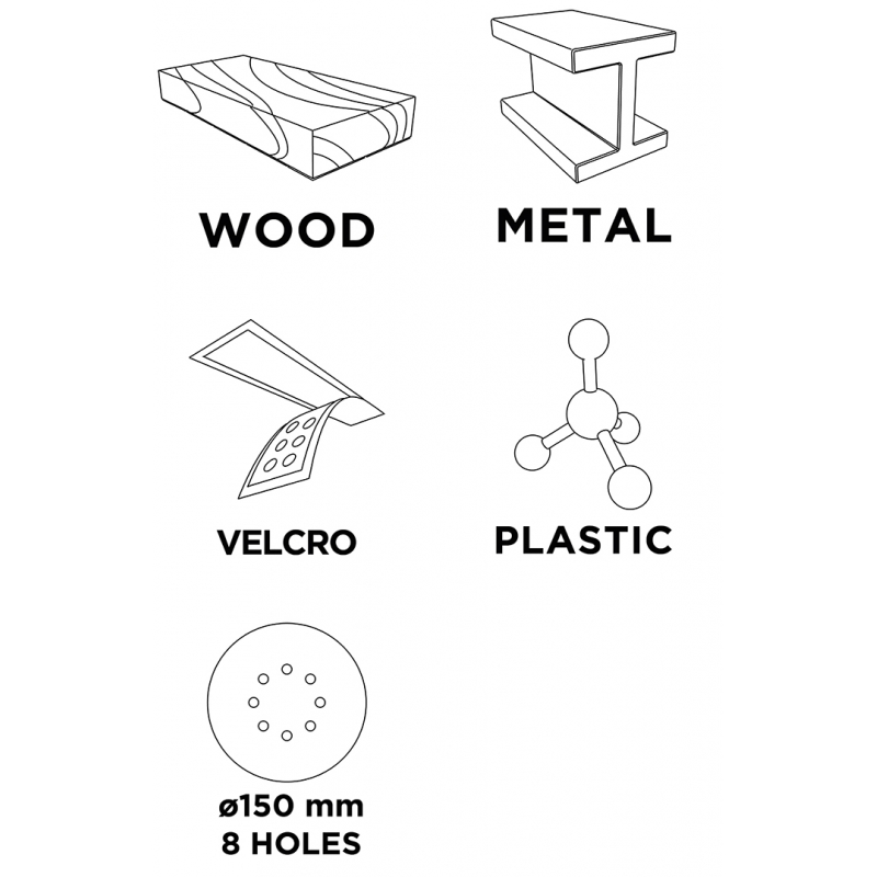 Krążki ścierne 150 mm, K60, 5 szt., z 8 otworami, 65mm