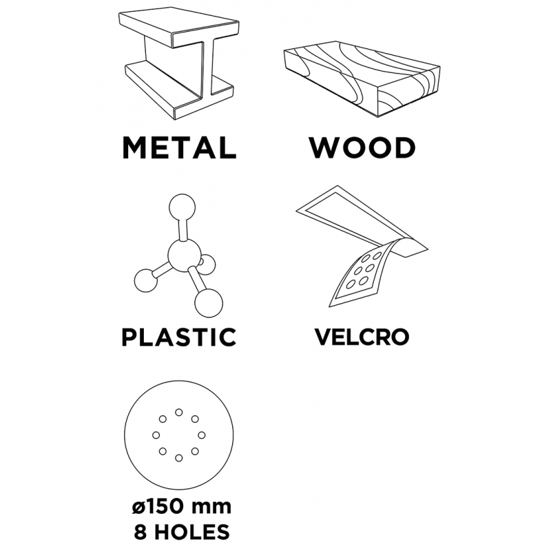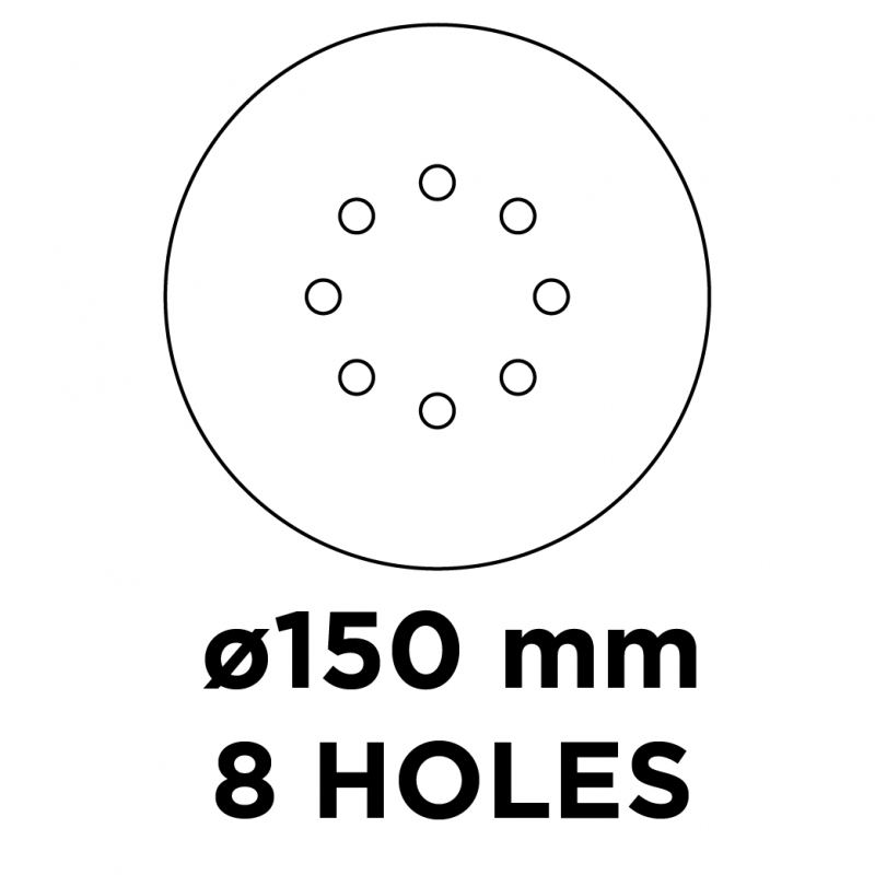 Krążki ścierne 150 mm, K150, 5 szt., z 8 otworami, 65mm