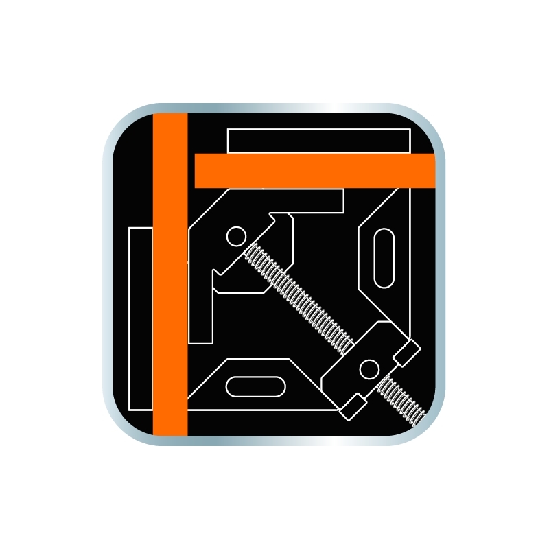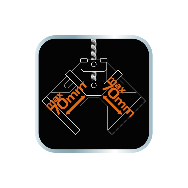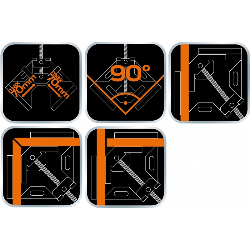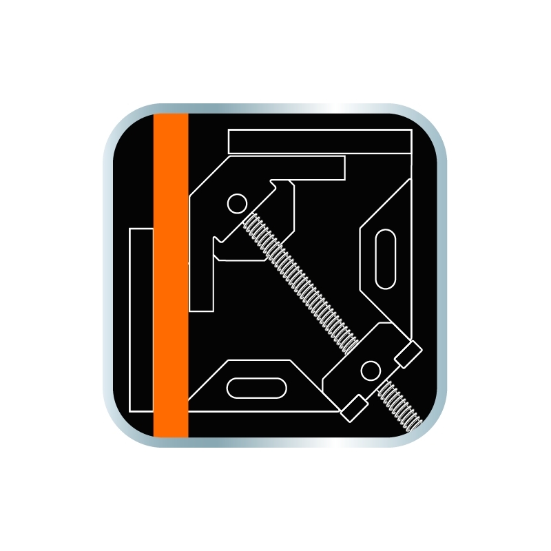 Ścisk narożnikowy 95 x 70 mm, aluminiowy, system szybkiego mocowania, kąt 90 stopni, uchwyt dwukomponentowy