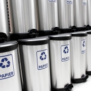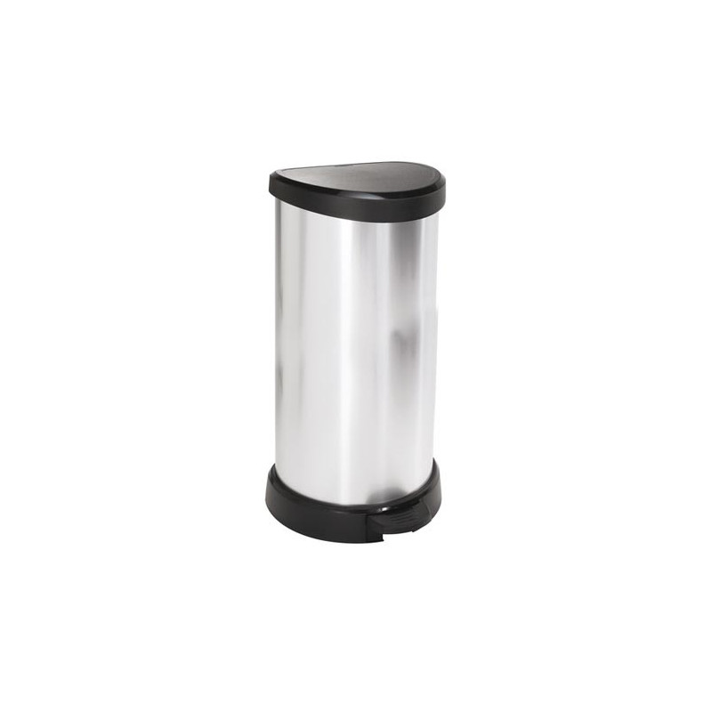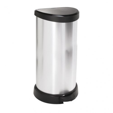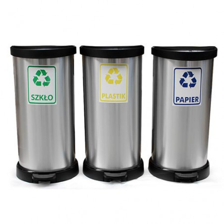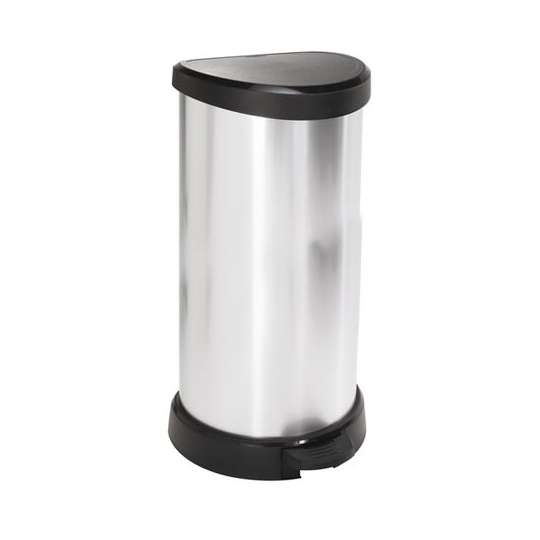Uniwersalny kosz na śmieci ułatwiający utrzymanie czystości zapewniając odpowiednią segregację. Wykonany z tworzywa sztucznego i pokryty srebrną okleiną, dzięki czemu wygląda jak metalowy. Kosz na śmieci otwiera się nogą za pomocą specjalnego pedału, więc ręce pozostają bez kontaktu z pokrywą. W środku kosz wyposażony jest w obejmę na worek. Konstrukcja pokrywy pozostawia zawartość kosza stale zamkniętą i niewidoczną.