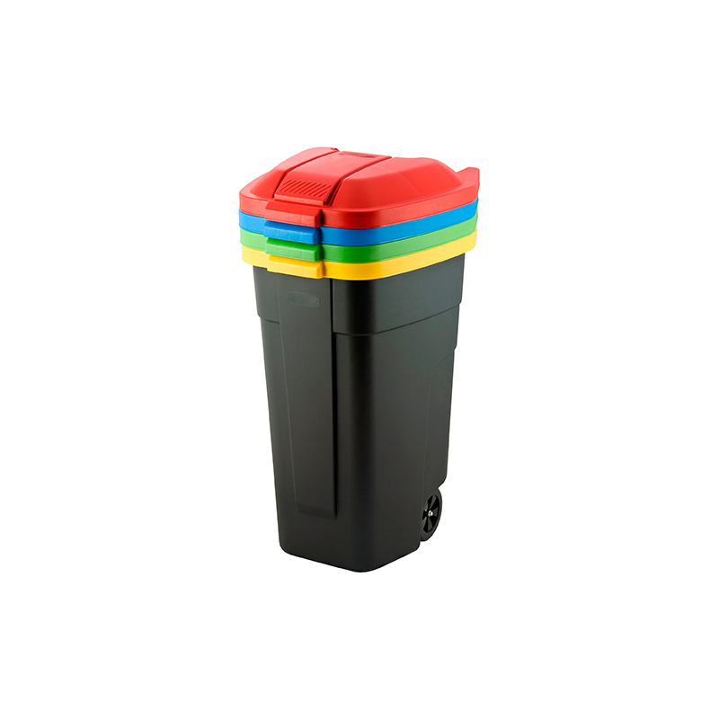 Pojemniki do segregacji odpadów wykonany z mocnego polietylenu. Pojemnik odporny na uszkodzenia mechaniczne oraz warunki atmosferyczne. Konstrukcja pojemnika, dzięki kółkom oraz uchwytowi, pozwala na łatwe przemieszczanie.