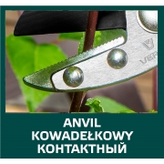 Sekator ogrodowy kowadełkowy 190 mm, maksymalna średnica cięcia 10 mm, pokrycie PTFE, antypoślizgowy uchwyt