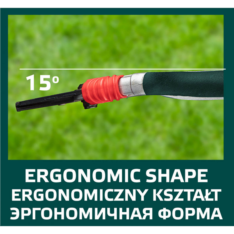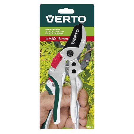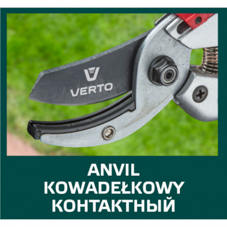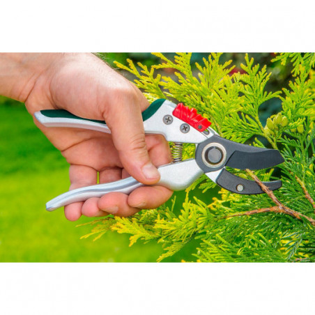 Sekator ogrodowy kowadełowy aluminiowy 195 mm, maksymalna średnica cięcia 18 mm, pokrycie PTFE, ergonomiczne odgięcie ostrzy 15°, antypoślizgowy uchwyt