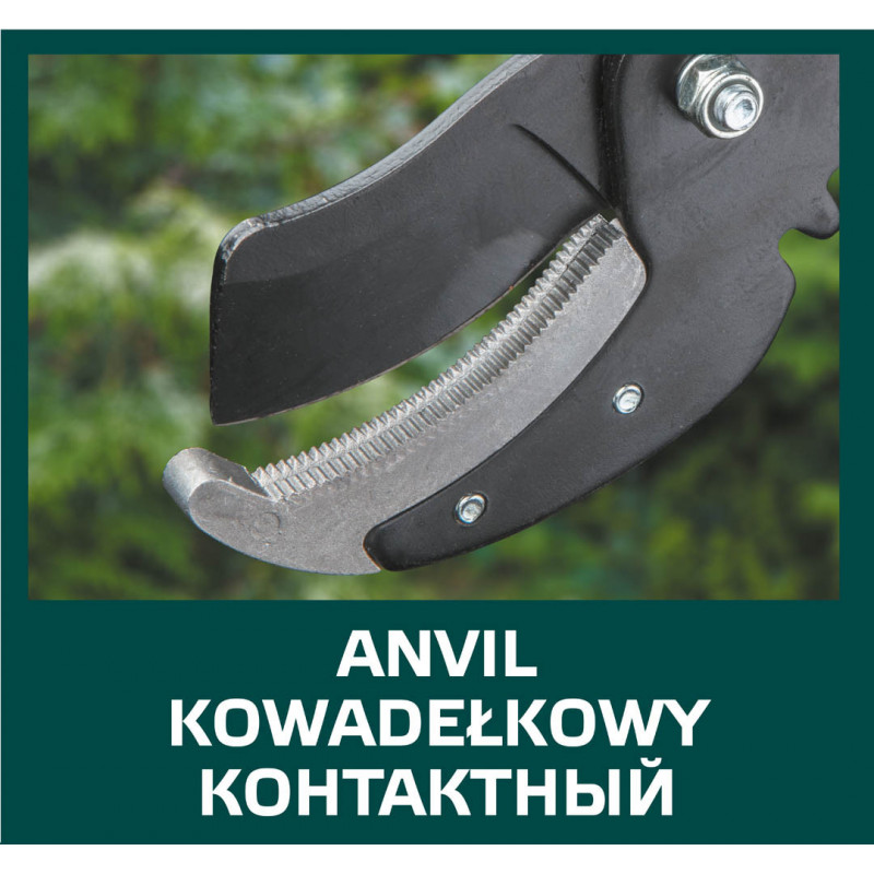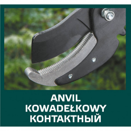Sekator do gałęzi kowadełkowy 710 mm, maksymalna średnica cięcia 42 mm, uchwyty aluminiowe, dźwignia zwiększająca siłę cięcia (+40%), pokrycie PTFE, antypoślizgowe uchwyty