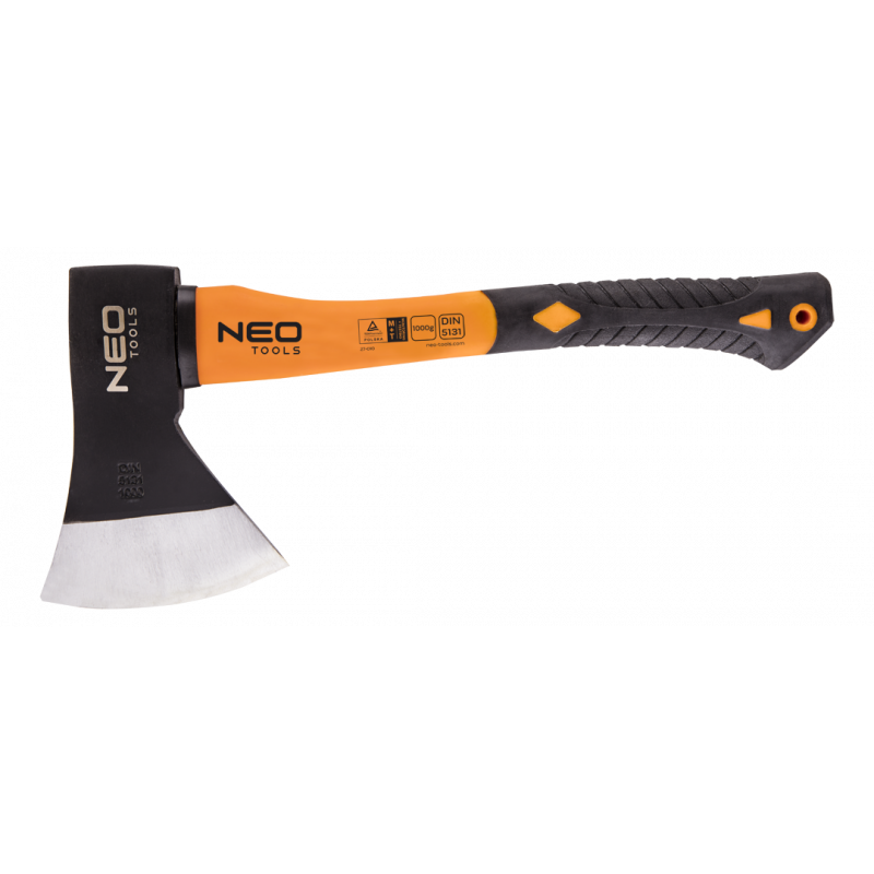 Siekiera 1000 g, trzonek z włókna szklanego, gumowany uchwyt, obuch hartowany strefowo, (HxL) 400 x 175 mm, DIN5131