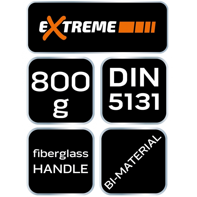 Siekiera 800 g, trzonek z włókna szklanego, gumowany uchwyt, obuch hartowany strefowo