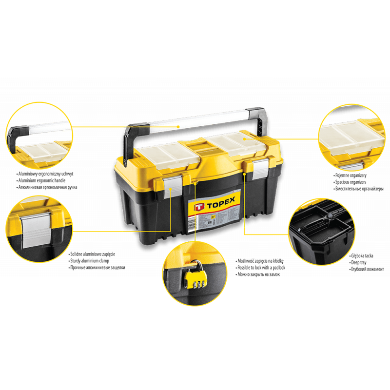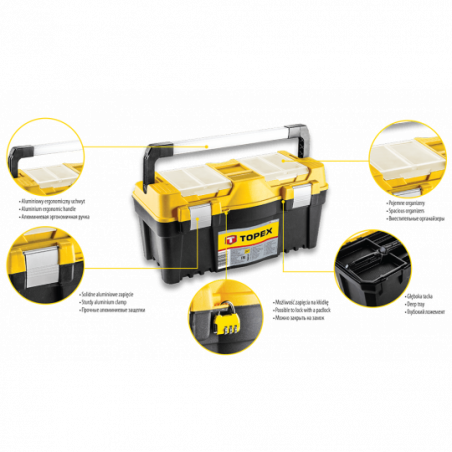Skrzynka narzędziowa 22", z aluminiowych uchwytem, (LxWxH) 277 x 267 x 550 mm, aluminiowe klamry