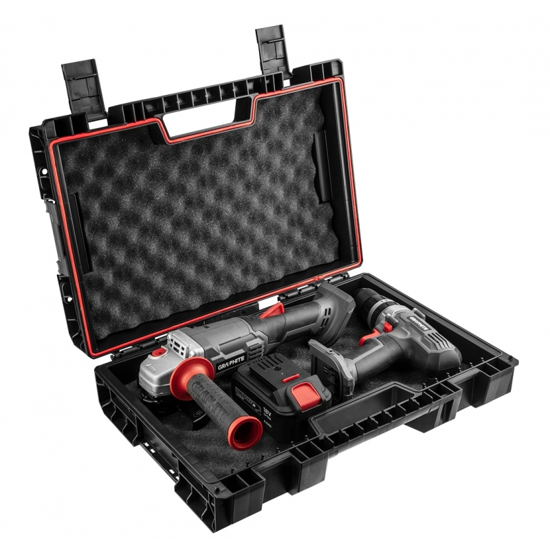 Skrzynia na elektronarzędzia GRAPHITE wymiary 448(L) x 322(W) x 126(H) mm, pojemność 11 litrów, uszczelka w pokrywie, odporność na wodę i pył, poliamidowe konektory boczne, wzmocniona konstrukcja korpusu, mocne zapięcia, elastyczne pasy mocujące, pianka ochronna