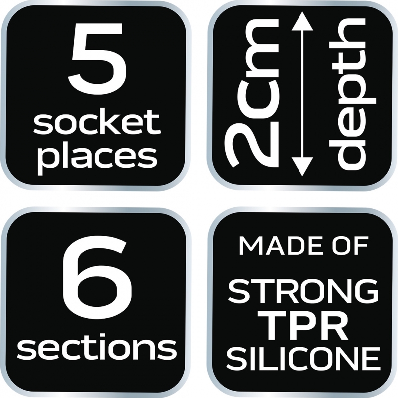 Kuweta na narzędzia, silikonowa, 25.7 x 23.2 x 2.5 cm, 6 kieszeni, 5 uchwytów na nasadki, głębokość 20 mm, elastyczna, antypoślizgowa, ochronna.