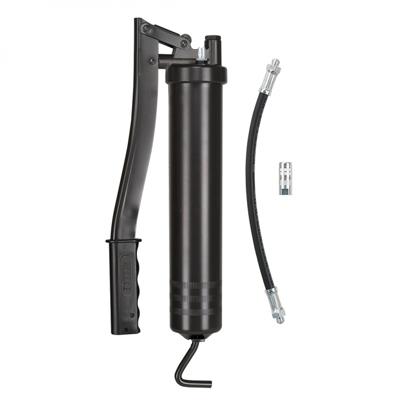 Smarownica dżwigniowa 500 cm3 z wężykiem 11 x 300 mm, z końcówką 12 631, wydajność 1.4 cm3/suw, grubość ścianki cylindra 1 mm, ciśnienie robocze 400 bar, (LxWxH) 400 x 140 x 75 mm