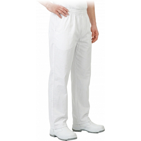 RAW-POL LH‑FOOD_TRO to męskie spodnie ochronne przeznaczone do pracy w przemyśle spożywczym. Wykonane z mieszanki poliestru i bawełny, zapewniają komfort, trwałość oraz możliwość prania przemysłowego w temperaturze do 95°C. Wyposażone w elastyczną gumkę w pasie i wewnętrzną kieszeń, zgodne z wymaganiami systemu HACCP.