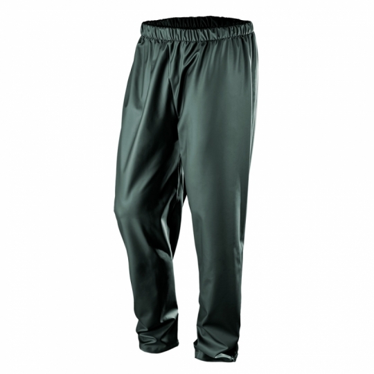 Spodnie przeciwdeszczowe PU/PVC, EN 343, gramatura 310 g/m2, regulowany obwód nogawki, guma w pasie, wszywka identyfikacyjna, certyfikat CE, rozmiar M