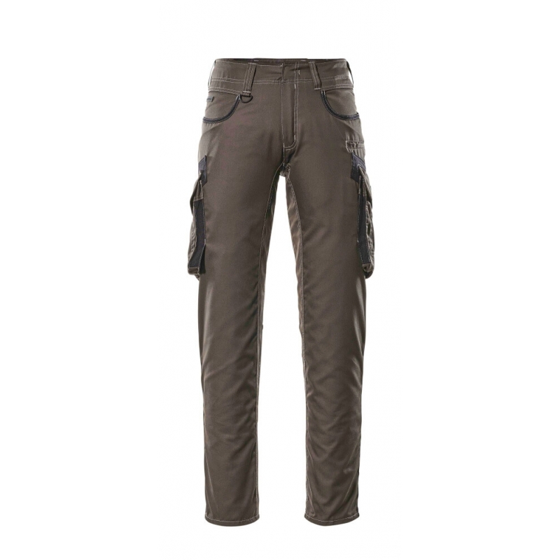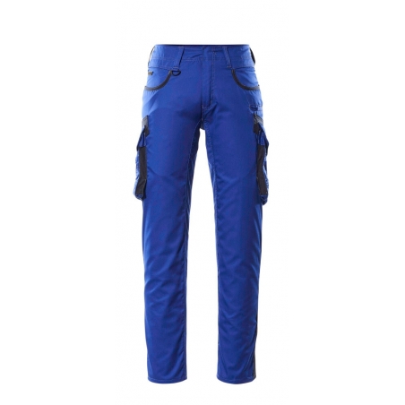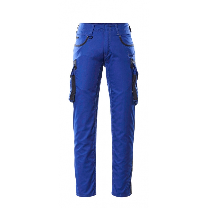 Dzięki niskiej wadze i wysokiej zawartości bawełny szczególnie nadają się do pracy w ciepłym środowisku.; Wytrzymałe potrójne szwy na nogawkach i w kroku zwiększają żywotność produktu.; Niski stan oraz ergonomiczny krój pasa zapewniają, że spodnie dopasowują się do ruchów ciała.; Wygodny krój z dobrze wykrojonymi nogawkami i klinem po wewnętrznej stronie nogawki, i w kroku (z dodatkowym wzmocnieniem).; Dodatkowa widoczność dla otoczenia dzięki zastosowaniu pasków refleksyjnych.