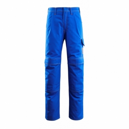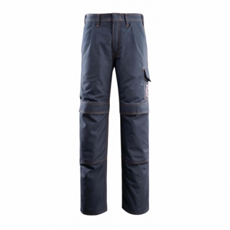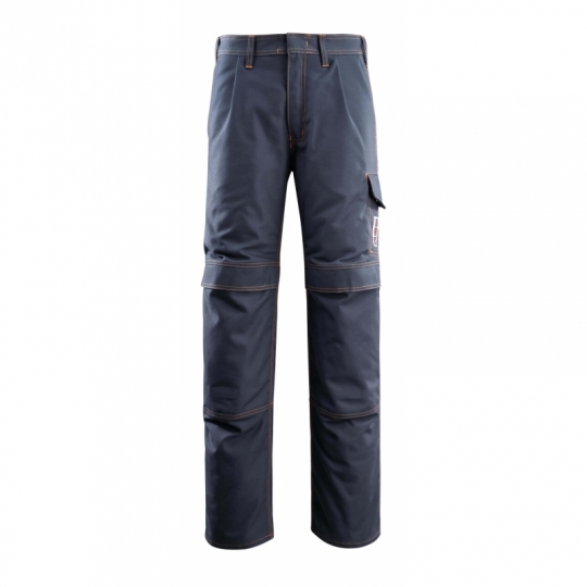 Antystatyczna, chroniąca przed kwasem i ognioodporna tkanina PyroPro®.; Wytrzymałe potrójne szwy na nogawkach i w kroku zwiększają żywotność produktu.; Regulowane kieszenie na kolanach umożliwiają odpowiednie umieszczenie nakolanników.; Skierowane ku dołowi szwy uniemożliwiają przedostaniu się iskier.; Kieszeń na calówkę ze wzmocnionym wejściem.; Certyfikowane do użytku z wkładkami ochronnymi MASCOT typu SHORT lub LONG (wysokość kieszeni na kolanach jest regulowana).