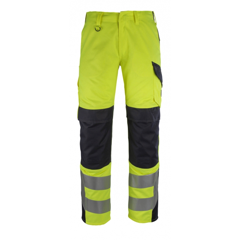 Antystatyczna, chroniąca przed kwasem i ognioodporna tkanina.; Podwójne i potrójne szwy w nogawkach i w kroku.; Pas o anatomicznym kształcie, stabilizujące podczas pracy we wszystkich pozycjach.; Ergonomiczny kształt nogawek opracowany zgodnie z ruchem ciała; Kieszenie na kolanach z wejściem od góry na nakolanniki oraz klapką, dzięki czemu nie gromadzi się brud.; Certyfikowane do użytku z wkładkami ochronnymi MASCOT typu LONG.