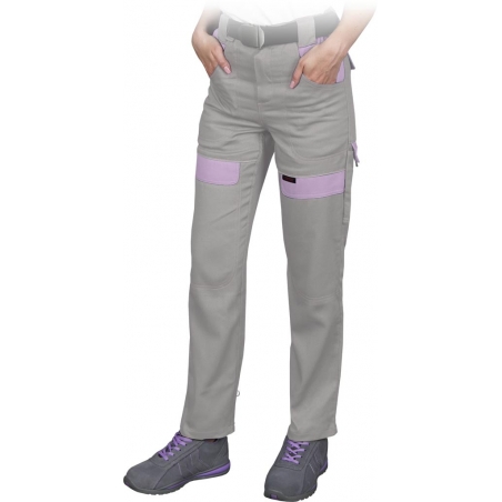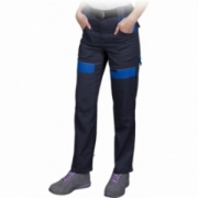 Spodnie ochronne do pasa CORTON, damskie. - tkanina: 100% bawełna - gramatura 260 g/m2 - dwie boczne kieszenie oraz dwie tylne zapinane na rzep - kieszenie na nogawkach, w tym jedna na narzędzia - możliwość regulacji w pasie dzięki gumce w bocznych partiach - odblaskowe elementy