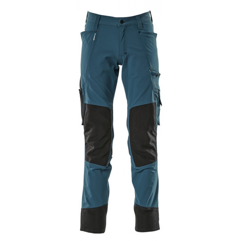 Wykonane z trwałego materiału CORDURA® kieszenie na nakolanniki umożliwiają regulację i dobranie optymalnego położenia.