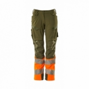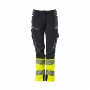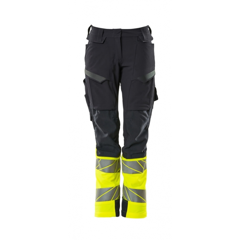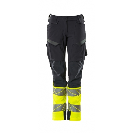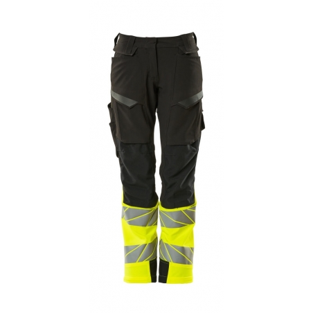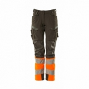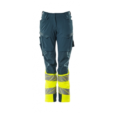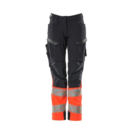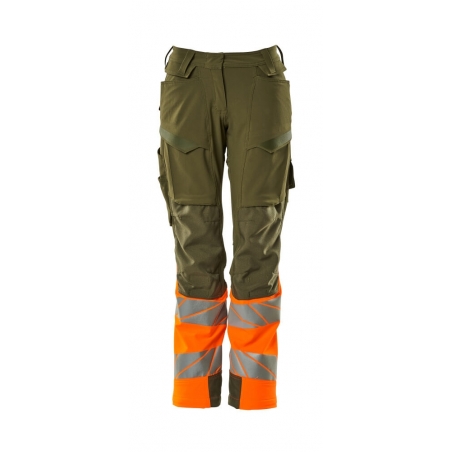 Krój Diament zaprojektowany jest specjalnie dla kobiet, u których różnica pomiędzy obwodem talii i bioder jest większa niż 20 cm.; Materiał streczowy rozciąga się we wszystkich kierunkach, co zapewnia użytkownikowi niezrównaną swobodę ruchu, bez ucisku i ocierania.; Wielofunkcyjny materiał streczowy łączy niską wagę z bardzo dużą trwałością. Jest przy tym wodoodporny.; Produkt nadaje się do prania przemysłowego.; Wykonane z trwałego materiału CORDURA® kieszenie na nakolanniki umożliwiają regulację i dobranie optymalnego położenia.; Skuteczna wentylacja nóg dzięki zamkowi błyskawicznemu w tylnej części uda.; Możliwość zastosowania kieszeni wiszących 19450-126 dopinanych za pomocą guzików.; Certyfikowane do użytku z wkładkami ochronnymi MASCOT typu SHORT lub LONG (wysokość kieszeni na kolanach jest regulowana).