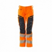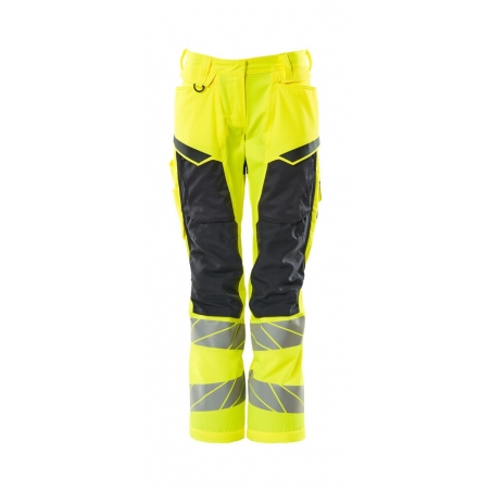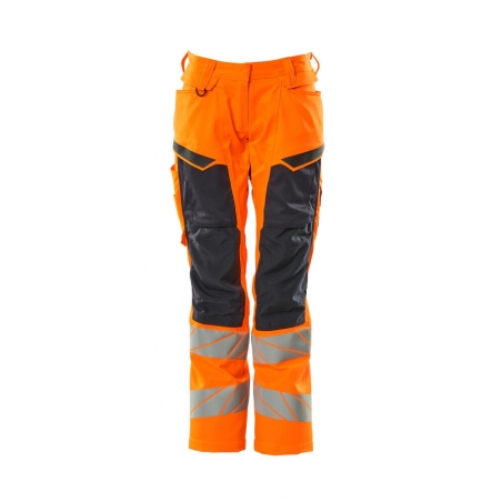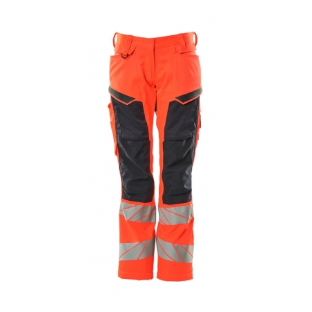 Krój Diament zaprojektowany jest specjalnie dla kobiet, u których różnica pomiędzy obwodem talii i bioder jest większa niż 20 cm.; Lekka, mocna tkanina o splocie RipStop. Czyni on materiał wyjątkowo odpornym na rozdarcie, a przez to znacznie wydłuża jego trwałość.; Produkt stanowi połączenie tradycyjnego materiału i streczu. Elastyczny materiał jest wszyty tam, gdzie potrzebna jest dodatkowa swoboda ruchów.; Ergonomiczny kształt nogawek opracowany zgodnie z ruchem ciała; Wykonane z trwałego materiału CORDURA® kieszenie na nakolanniki umożliwiają regulację i dobranie optymalnego położenia.; Możliwość zastosowania kieszeni wiszących 19450-126 dopinanych za pomocą guzików.; Certyfikowane do użytku z wkładkami ochronnymi MASCOT typu SHORT lub LONG (wysokość kieszeni na kolanach jest regulowana). ; Produkt nadaje się do prania przemysłowego.