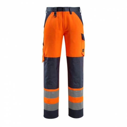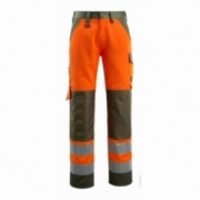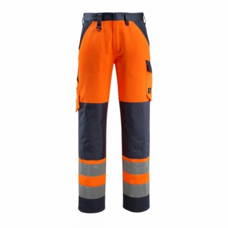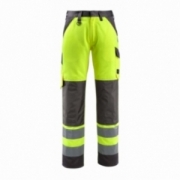 Wytrzymałe potrójne szwy na nogawkach i w kroku zwiększają żywotność produktu.; Nogawka ergonomicznie skrojona z tyłu, aby nadmiar materiału nie przeszkadzał podczas prac w pozycji klęczącej.; Ciemna tkanina jest umieszczona w miejscach najbardziej narażonych na zabrudzenie.; Kieszenie na kolanach z wytrzymałego poliestru z wejściem od dołu na nakolanniki, dzięki czemu nie gromadzi się brud.; Standardowo o trzech długościach nogawek, co pozwala na wygodne dopasowanie i optymalne rozmieszczenie detali zgodnie z indywidualnym wyborem.; Produkt nadaje się do prania przemysłowego.; Certyfikowane do użytku z wkładkami ochronnymi MASCOT typu SHORT lub LONG (wysokość kieszeni na kolanach jest regulowana).