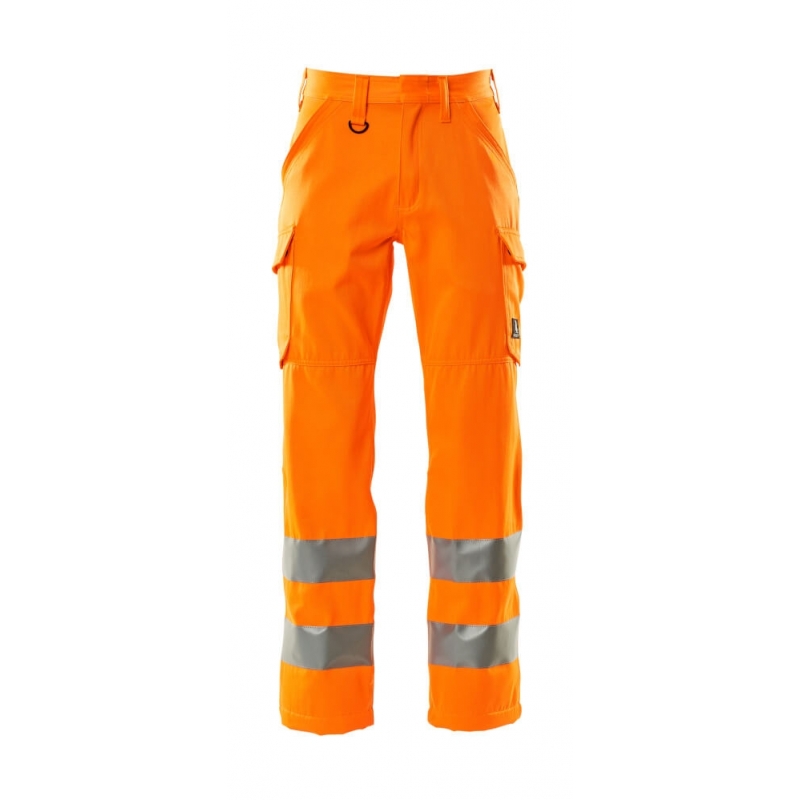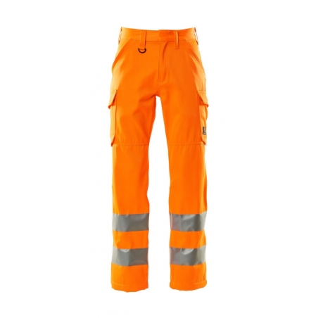 Obróbka powierzchni sprawia, że produkt jest odporny na zabrudzenia i zapewnia wysoką widoczność.; Możliwość prostego wydłużenia o 3 cm poprzez rozprucie czerwonego przeszycia z tyłu.; Kieszenie na udzie z klapką i zapięciem na ukryte zatrzaski.; Wytrzymałe potrójne szwy na nogawkach i w kroku zwiększają żywotność produktu.; Ergonomiczny kształt nogawek opracowany zgodnie z ruchem ciała; Produkt nadaje się do prania przemysłowego.